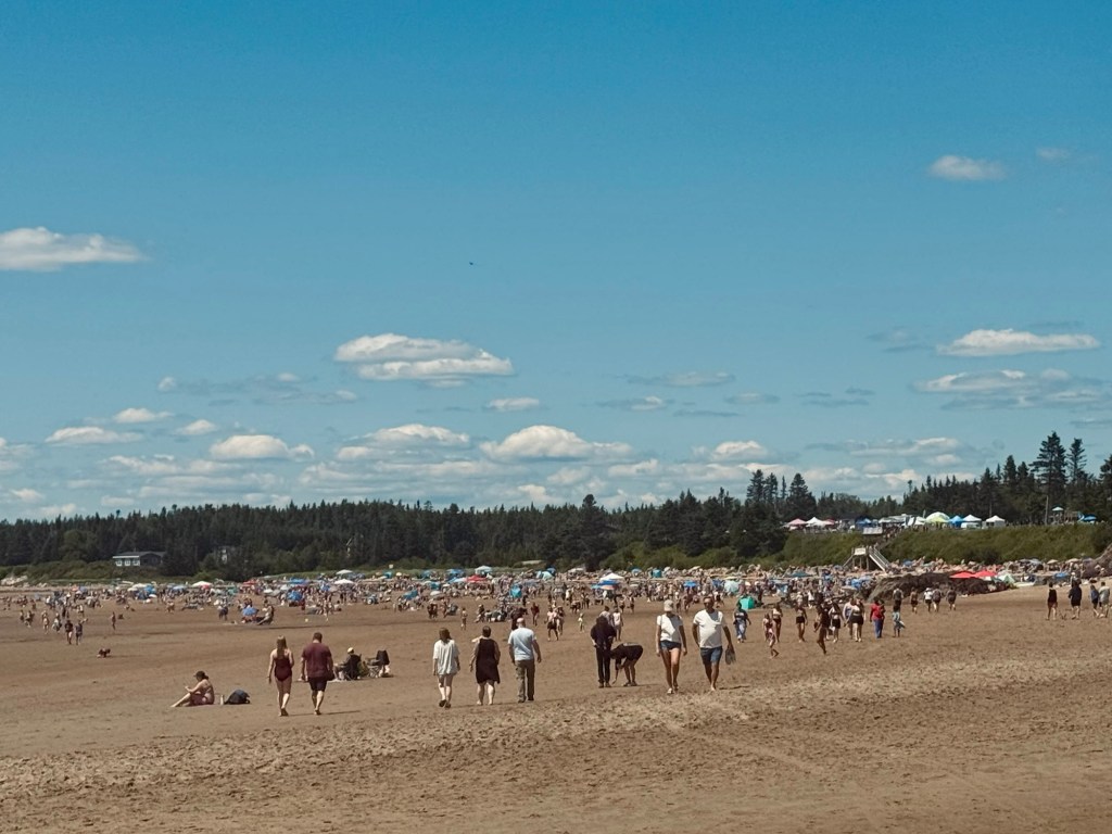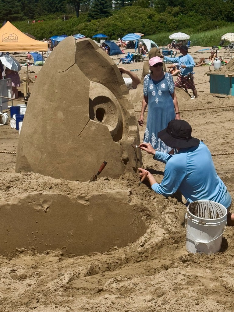 Although on this day, we are also driven by the promise of art, albeit very temporary. Previously a one-day amateur competition – a 30+ year stalwart of the local summer schedule, formerly known as the New River Beach Sand Sculpture Competition – the Bay of Fundy Sand Sculpture Festival at New River Beach now boasted three days of competition, workshops, and vendors. A focal point of the rebrand is a “Master Series”, with three teams of two professional sculptors creating masterful works of art in six hours – to only then watch it disappear forever in another six. (Unlike other parts of the world, the Bay of Fundy has a demanding rinse-repeat schedule of two high tides – the highest in the world – and two low tides each day.)