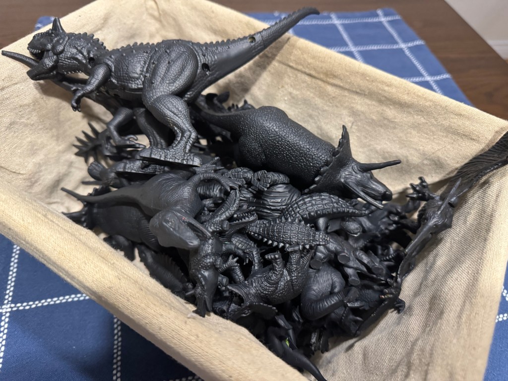 - Thrifted 100 plastic dinosaurs from Value Village.
